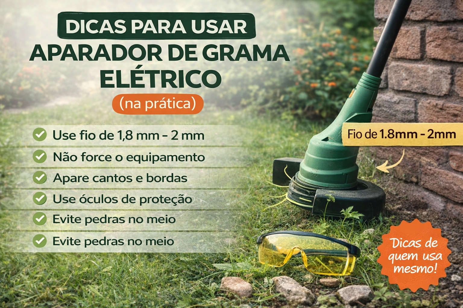🌿 Dicas para operar um aparador de grama elétrico (guia completo)